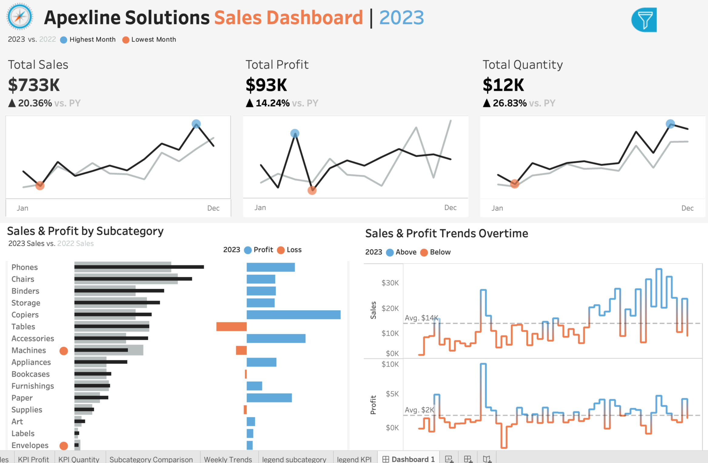 This project is a Sales Performance Dashboard built in Tableau using sample sales data. The dashboard helps to analyse sales, profit, and quantity trends over time, making it easier to track performance and spot key insights.